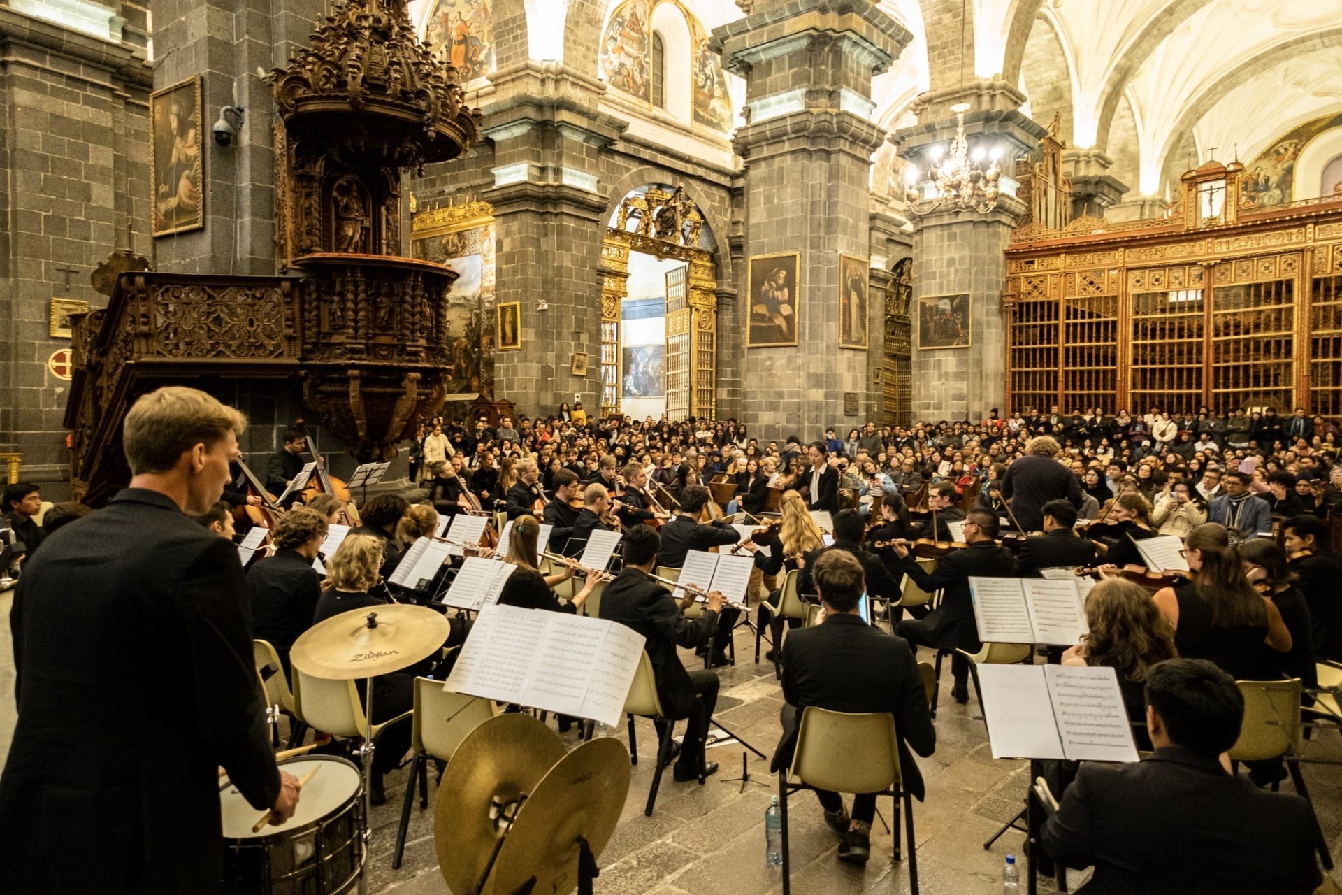 Am darauffolgenden Tag kam uns die Ehre zuteil, gemeinsam mit dem Orquesta Sinfónica Nacional Juvenil Bicentenario (OSNJB) im Gran Teatro Nacional ein Konzert zu spielen. Die erste Hälfte wurde vom Orquesta Beethoviana gestaltet. Den Anfang machte die Suite Arequipeña von Rudolfo Holzmann, gefolgt vom Konzert für Vibraphon und großes Orchester von Emmanuel Séjourné (arrangiert von Dominic Ferber) mit Christian Benning als Solisten. Die zweite Hälfte präsentierte das OSNJB Tschaikowskis 5. Sinfonie, ein fulminanter Höhepunkt des Abends. Die wechselseitige Ergänzung der Orchester durch einzelne Musiker und Musikerinnen machte die Veranstaltung zu einem verbindenden Erlebnis, das wir gerne länger genossen hätten.